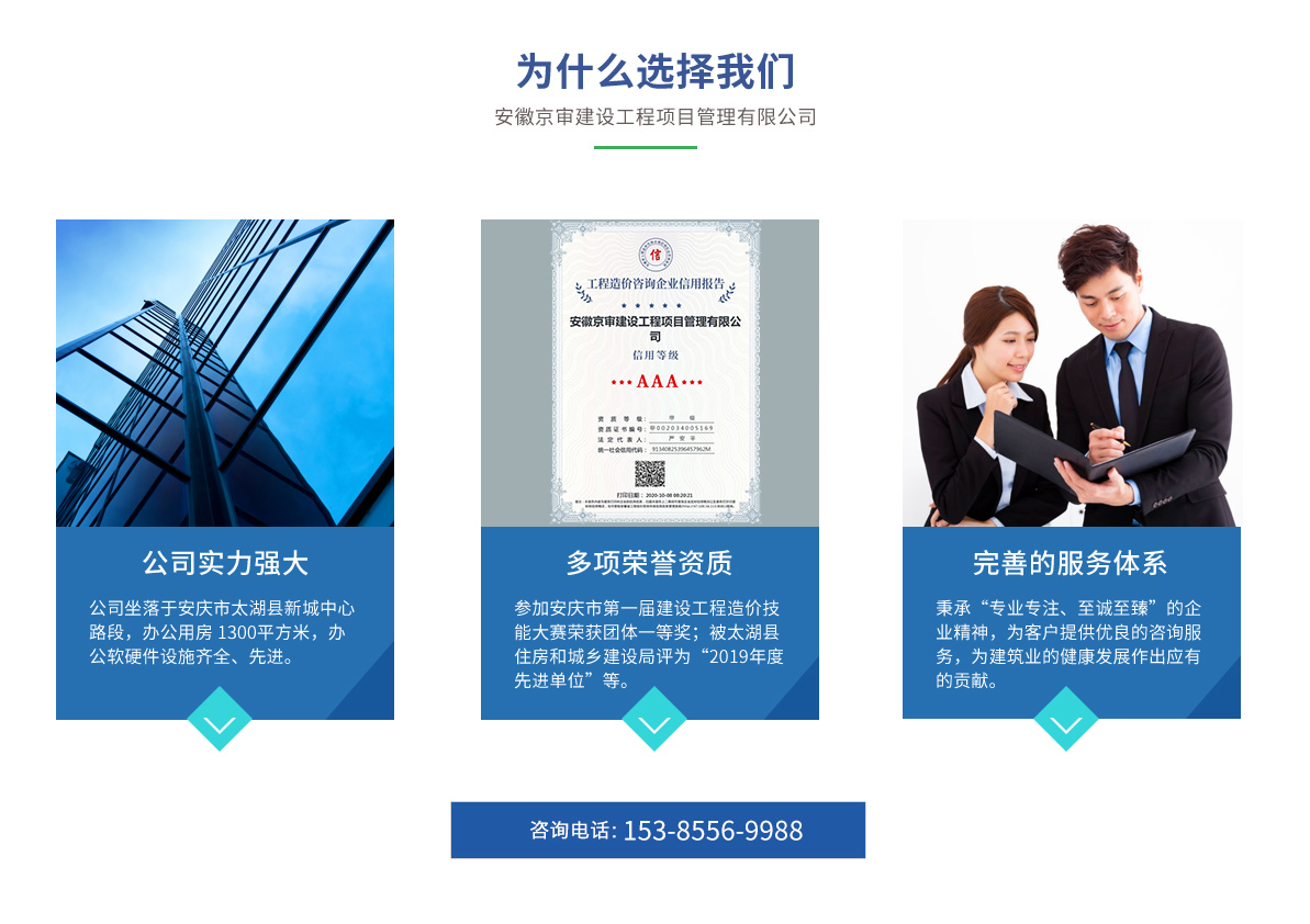 安徽京審建設(shè)工程項(xiàng)目管理有限公司于2014年7月在安徽辰宇建設(shè)工程項(xiàng)目管理有限公司太湖分公司(成立于2007年)的基礎(chǔ)上成立,坐落于優(yōu)美繁華的安慶市太湖縣新城中心路段,辦公用房 1300平方米,辦公軟硬件設(shè)施齊全、先進(jìn)。 一、項(xiàng)目與人力 在各級領(lǐng)導(dǎo)的支持與全體員工的努力下,歷經(jīng)15年的發(fā)展,我公司已取得工程造價(jià)咨詢甲級資質(zhì)、工程監(jiān)理(房屋建筑工程、市政公用工程)乙級資質(zhì)、工程招標(biāo)代理、政府采購代理...